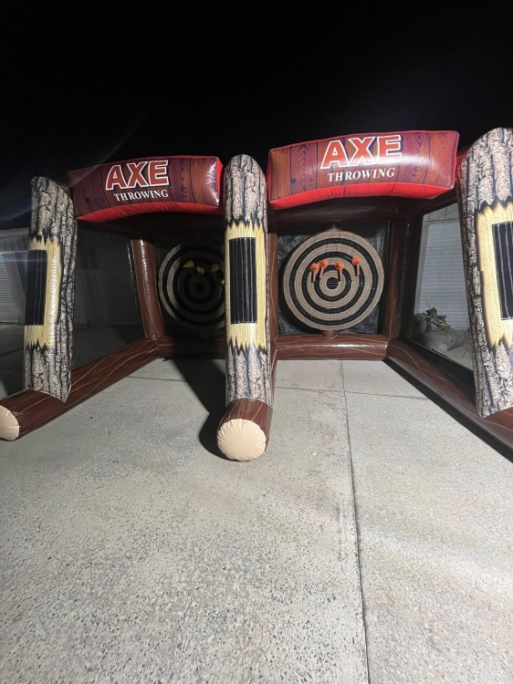 Step up to a thrilling, classic skill game where two players take turns hurling real (but safety-managed) axes at wooden targets, aiming for the bullseye. This rental includes a double lane setup so two participants can play side-by-side—perfect for friendly competition at parties, corporate events, team-building gatherings, or festivals. Each lane features a clearly marked target, protective backboards and barriers, and all necessary safety equipment and instruction to ensure a controlled, fun experience. Hosts can expect attendants or guidance on proper throwing technique, scoring, and range rules so guests of varying skill levels can participate confidently. This activity brings an energetic, rustic vibe and encourages camaraderie, focus, and a little friendly rivalry without requiring prior experience.